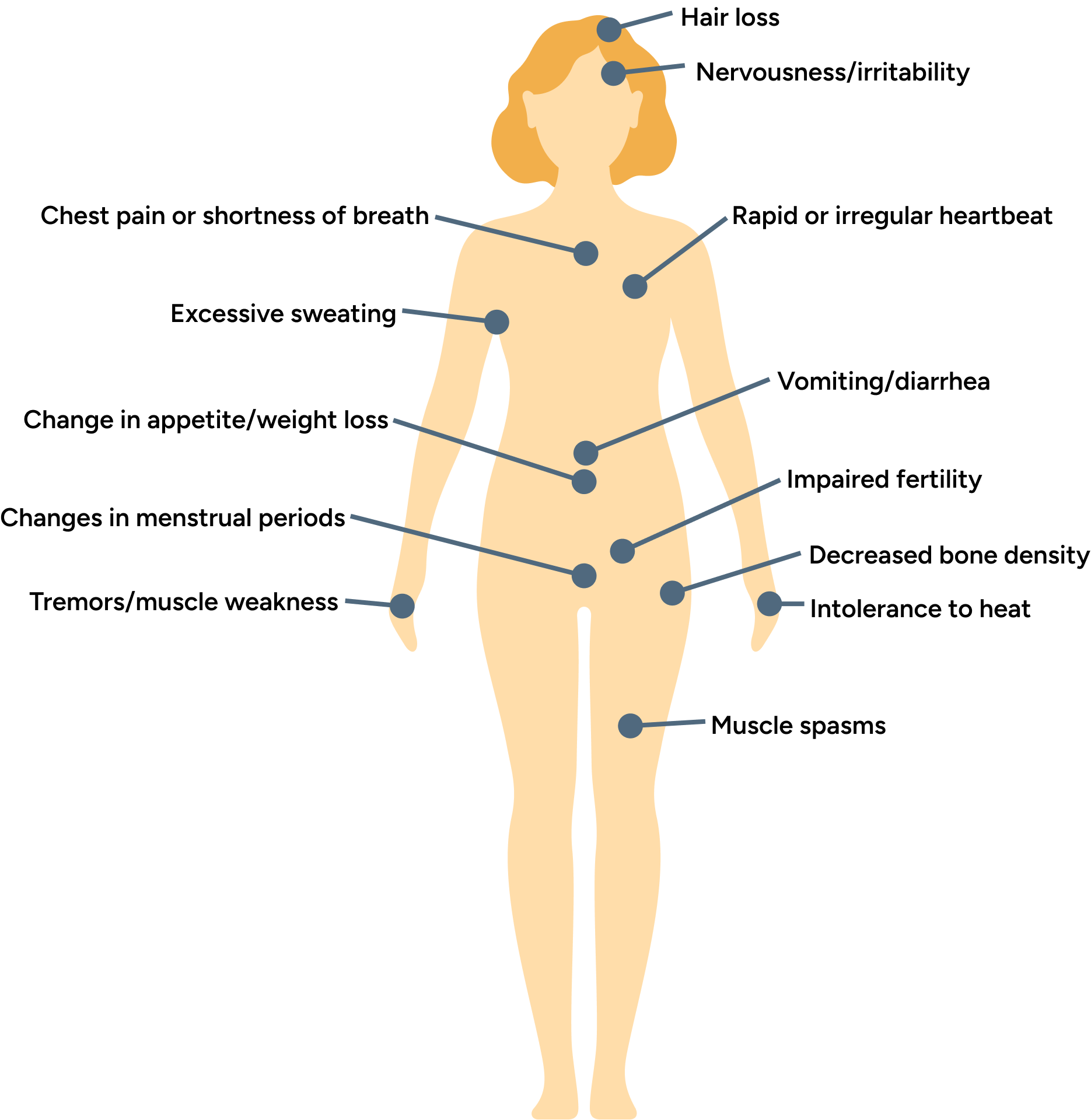 Certain side effects can occur with Synthroid, and these are often the result of your body getting too much medicine, also known as overtreatment. So it’s important to talk with your doctor about any symptoms you’re experiencing.